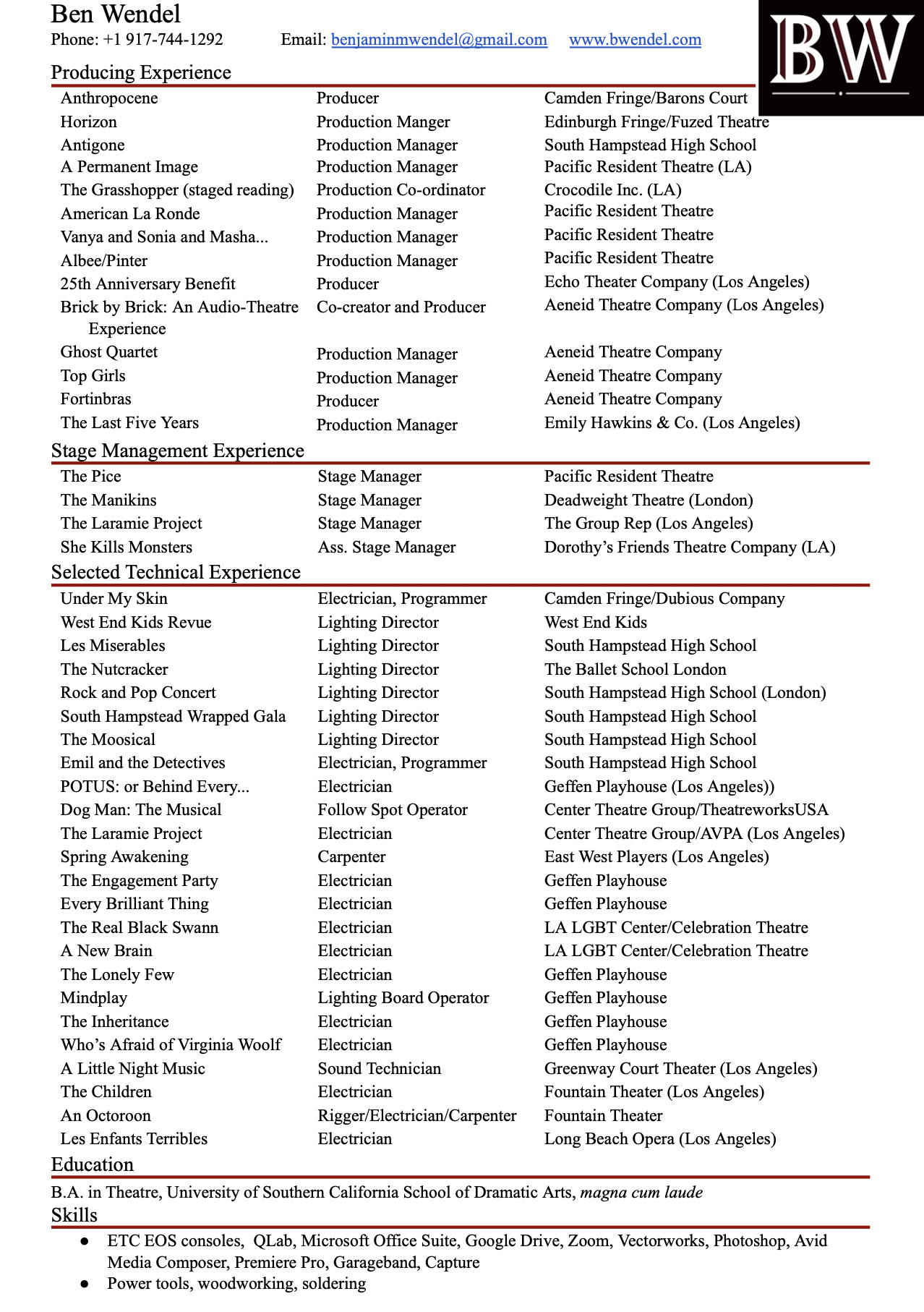 Ben Wendel - Artistic Director, Co-Creator, Producer, Sound Designer
